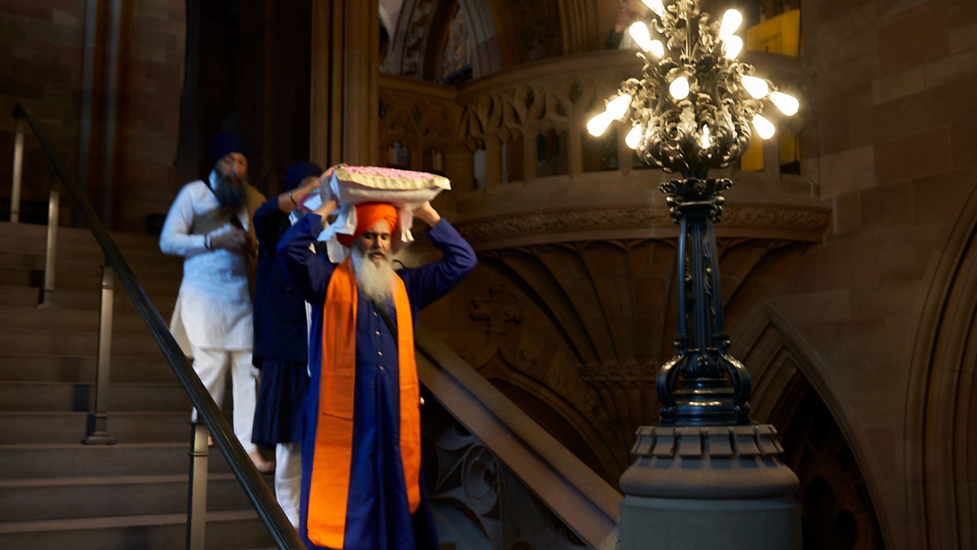 The Library worked closely with community representatives to facilitate the transport of the significant Sri Guru Granth Sahib to the Gurdwara for the annual Vaisakhi festival and to the Guru Nanak Dev Ji Gurdwara in Moss Side, Manchester, for their 70th anniversary celebrations. This sacred historic text is considered by Sikhs to be the living embodiment of the Guru.
